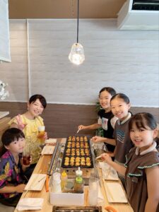 夏休みも残り10日ほどとなりました。宿題も進んでいることだと思います。多分・・・(笑)恒例のご飯会を、わざわざ電車に乗って自分で焼く「たこ焼き屋さん」へ。自分でたこ焼きを焼くのは初めての生徒さんもいて